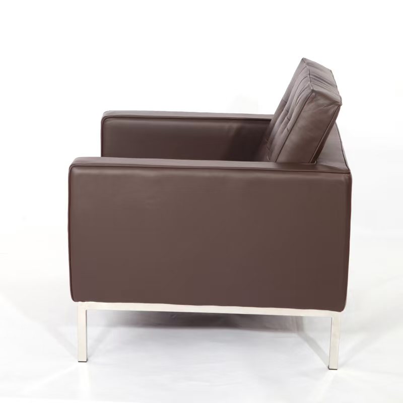- Florence Knoll Sofa由著名的美国家具设计师Florence Knoll在1954年设计。她的设计理念是创建一种简单、功能性强且美观的家具,将现代主义设计原则应用于实用的家具设计中。Florence Knoll Sofa的设计强调了清晰的线条、几何形状和质量制造,体现了她的“总体设计”哲学,即将建筑、家具和空间设计相结合。